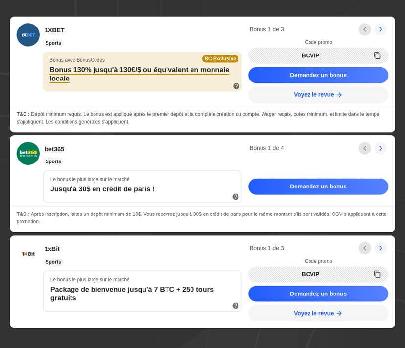 - Offres promotionnelles et bonus de bienvenue